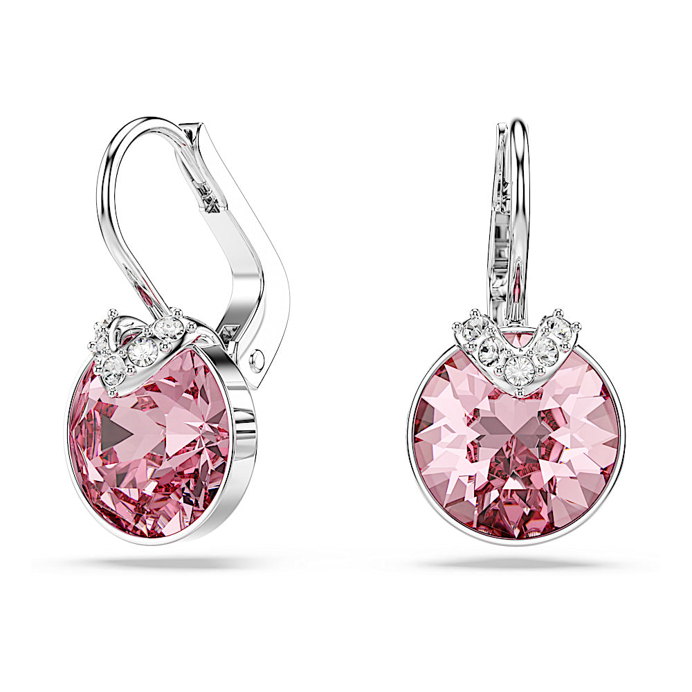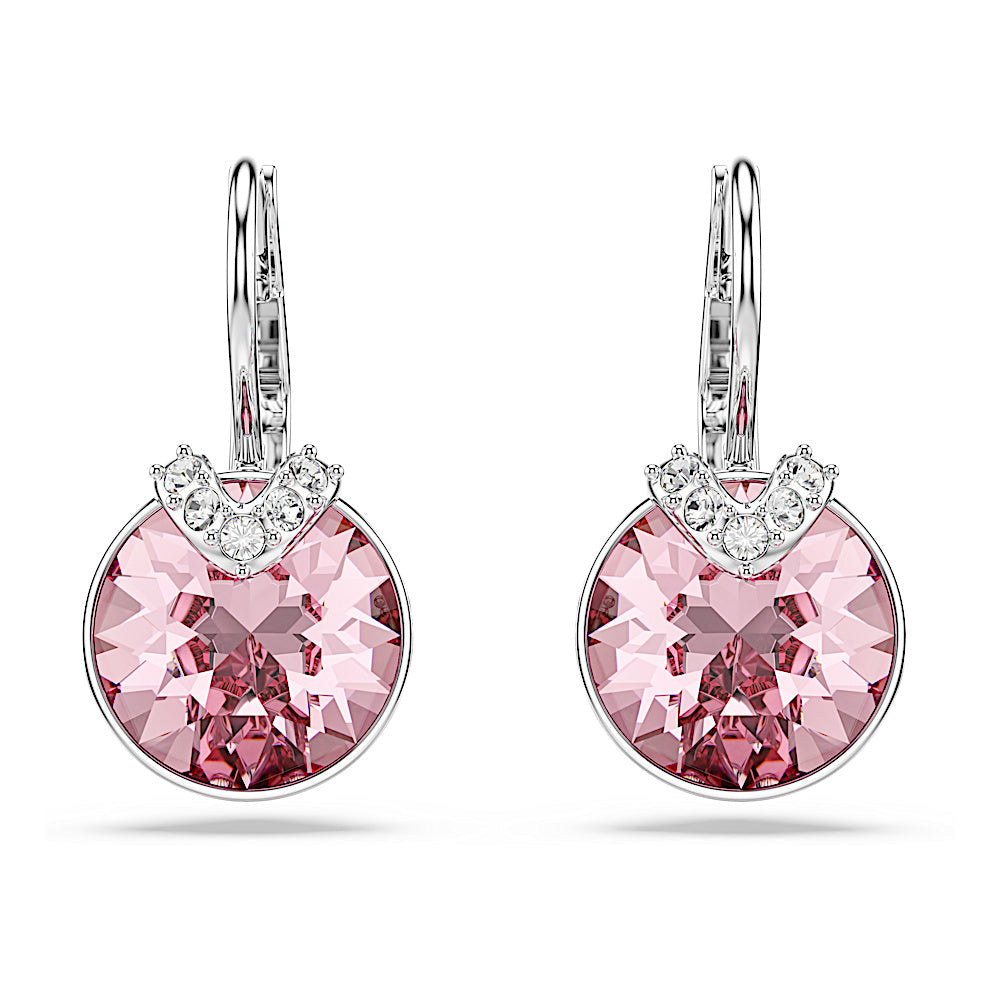 Infunde un toque de color a tu estilo diario con este cautivador par de pendientes. Cada pieza, bañada en rodio, cobra vida con un cristal de talla redonda en rosa, creando un look de pura alegría. Estos pendientes son una elección perfecta para tus estilismos de día y de noche, y pueden llevarse con un colgante de color rosa a juego.