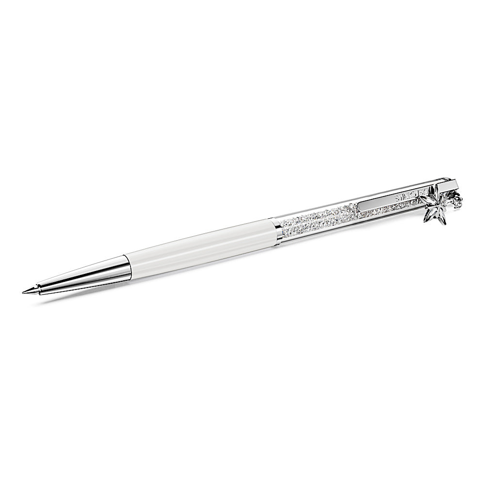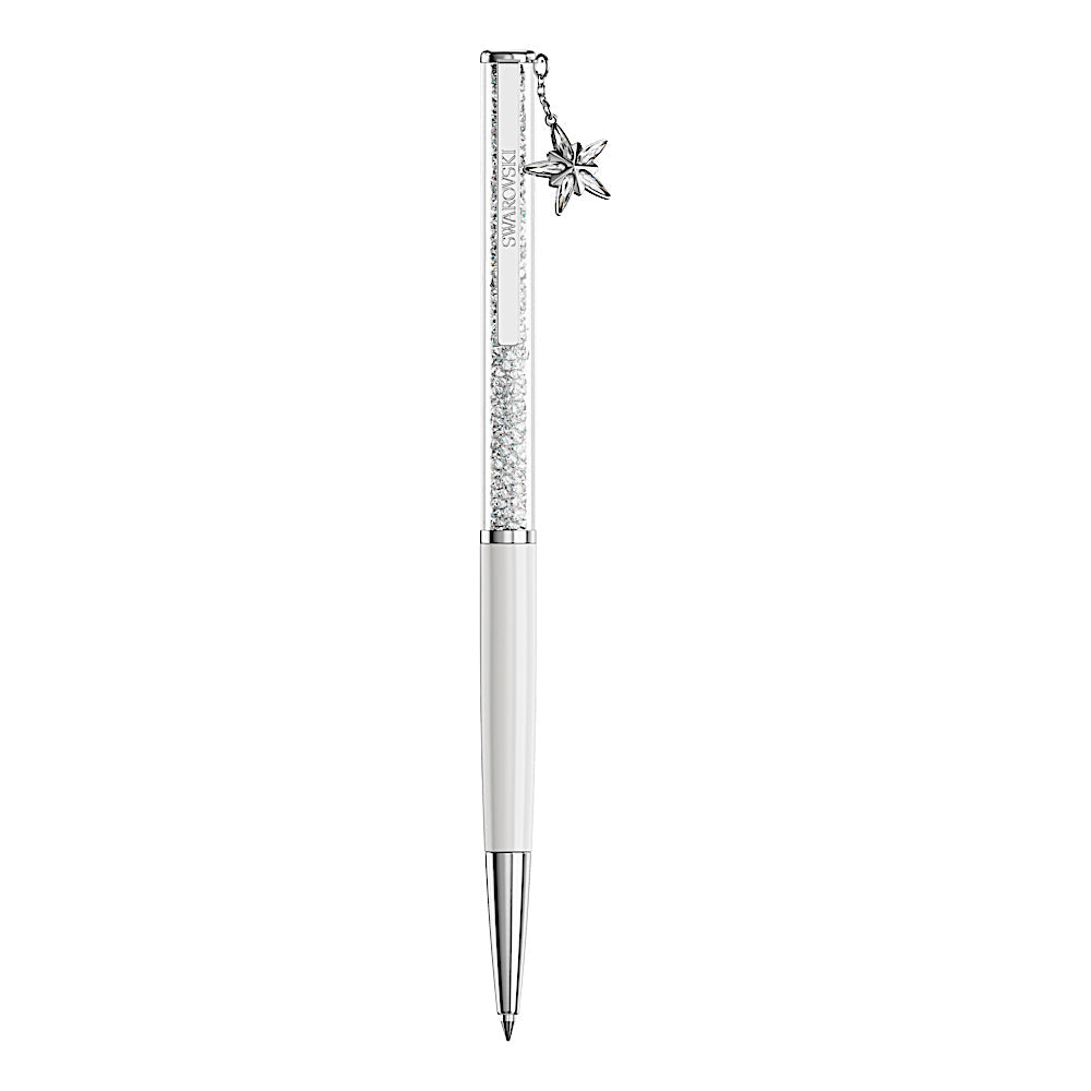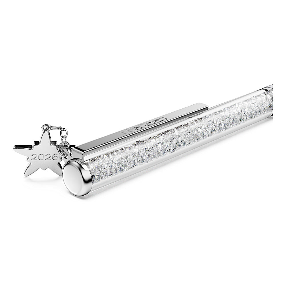 Este bolígrafo de Edición Anual 2026 es un accesorio atemporal para una creatividad sin límites. Su diseño estilizado está relleno de alrededor de 400 cristales transparentes, visibles a través de la larga ventana transparente. Junto al tambor blanco lacado, el bolígrafo incluye acabados cromados para un aspecto ultralujoso. En el extremo del bolígrafo hay un radiante charm en forma de estrella con el año 2026 grabado en el reverso. En las tiendas Swarovski se pueden comprar recambios de tinta negra y azul.