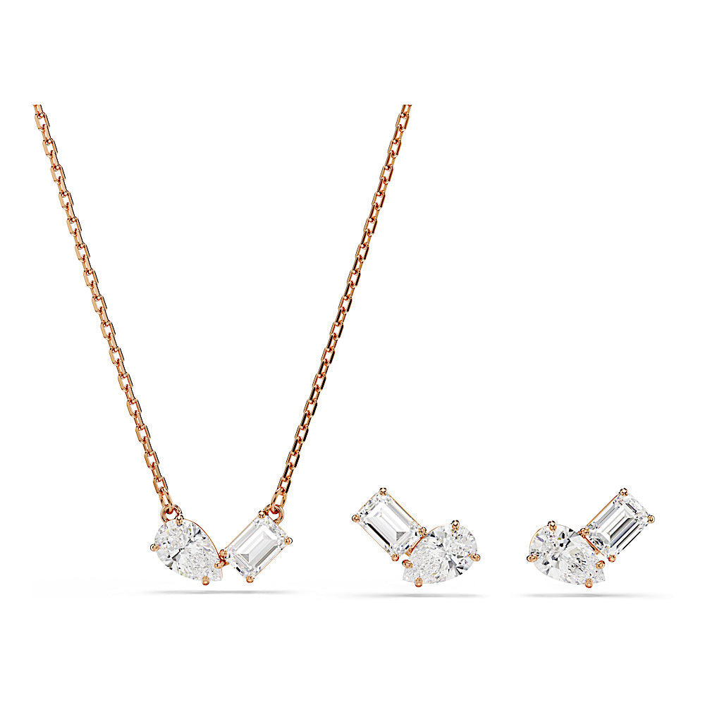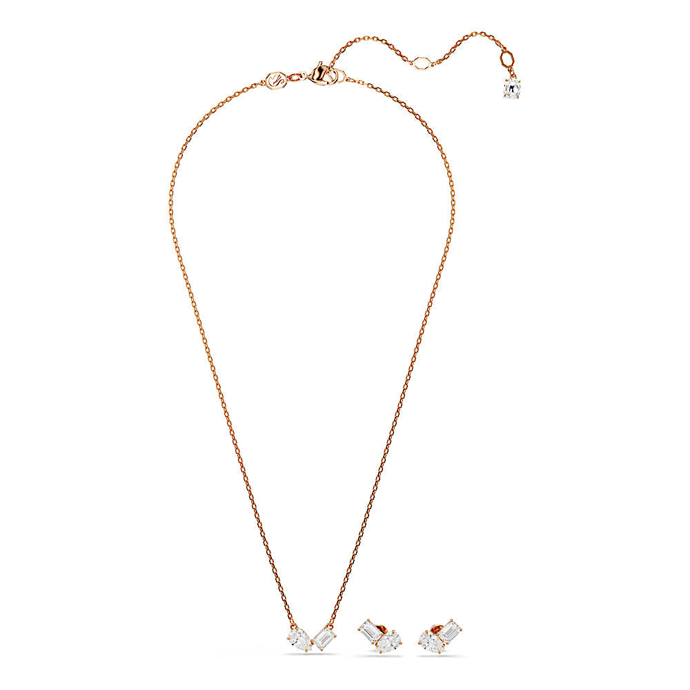 Conjunto Mesmera, Talla pera, Talla octogonal, Blanco, Baño tono oro rosa