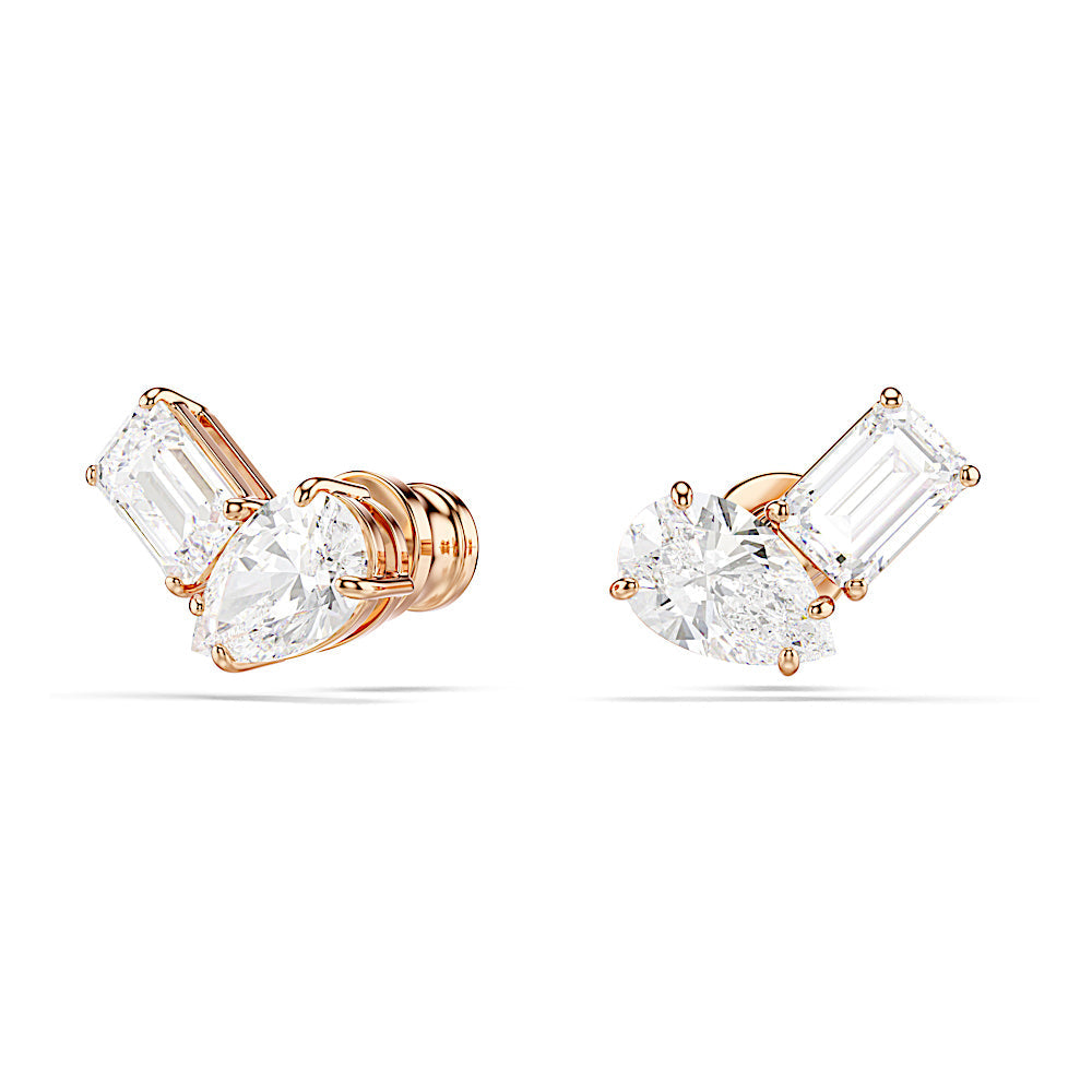 Pendientes: 0.9 x 1.5 cm Material: Circonita y Acabado tono oro rosa Color: Blanco