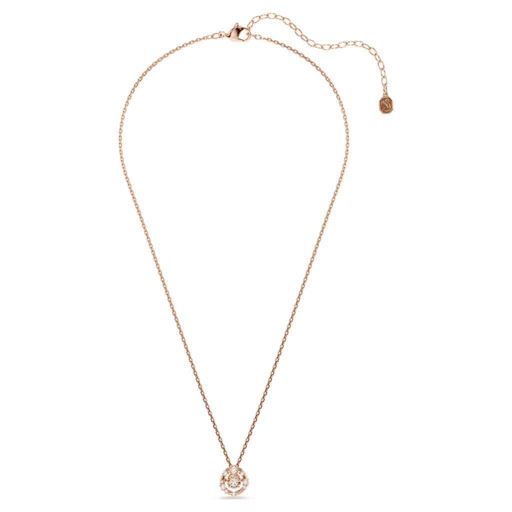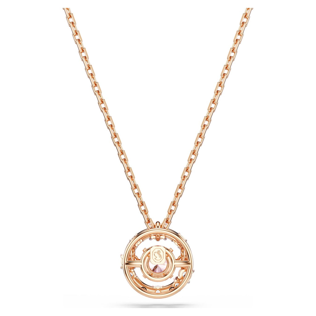 Este colgante Constella, que brilla como un cielo estrellado, es un ejemplo reluciente del dominio de la luz de Swarovski. El diseño bañado en tono oro rosa presenta una Dancing Stone en el centro que produce infinitos reflejos, mientras que el borde de la estructura metálica está adornado con Swarovski Zirconia más pequeñas. Lleva este colgante con los pendientes a juego para elevar tu estilo al cosmos.