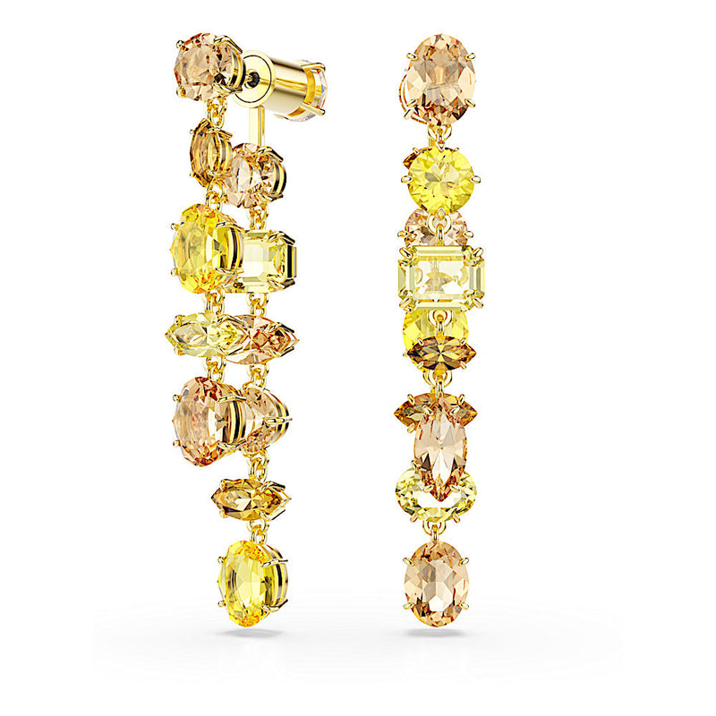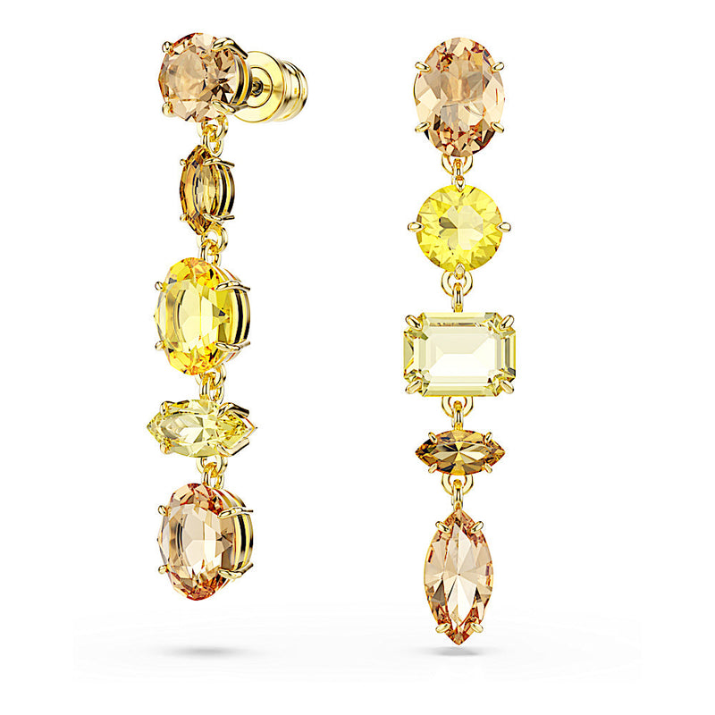 Pendientes Gema, Diseño asimétrico, Tallas mixtas, Largos, Amarillos, Baño tono oro