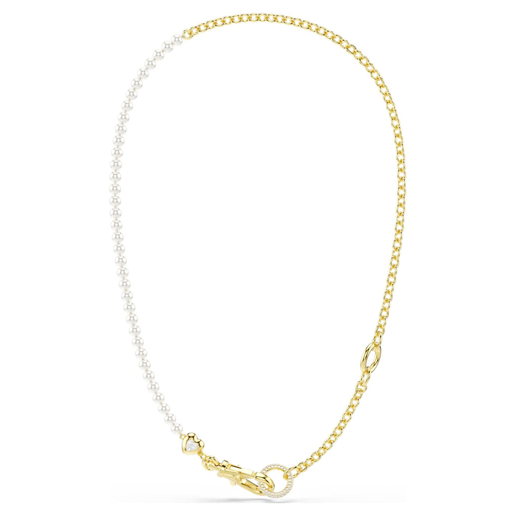 Dividido entre una cadena bañada en tono oro y una hilera de Swarovski Crystal Pearls en White, este collar se puede llevar como un estilo integral largo, o como un collar en forma de Y enganchando el mosquetón al eslabón superior. El pequeño motivo de corazón ofrece una sutil expresión de amor, y puedes expresar tu propia personalidad añadiendo nuestros charms de Swarovski.
