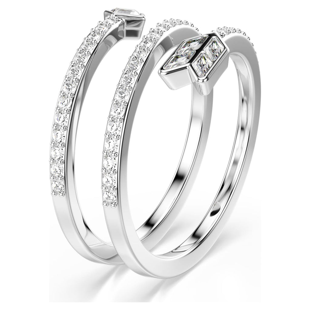 Dale a tu estilo un toque romántico con este anillo en espiral con forma de flecha de Cupido. Su diseño único combina un elegante baño de rodio con cristales redondos transparentes que hacen que este look sea un remolino de pura pasión. Llévalo solo o combínalo con otras joyas en forma de flecha de la misma familia Idyllia.