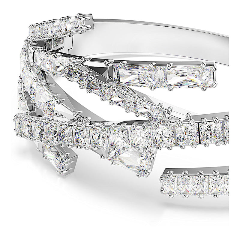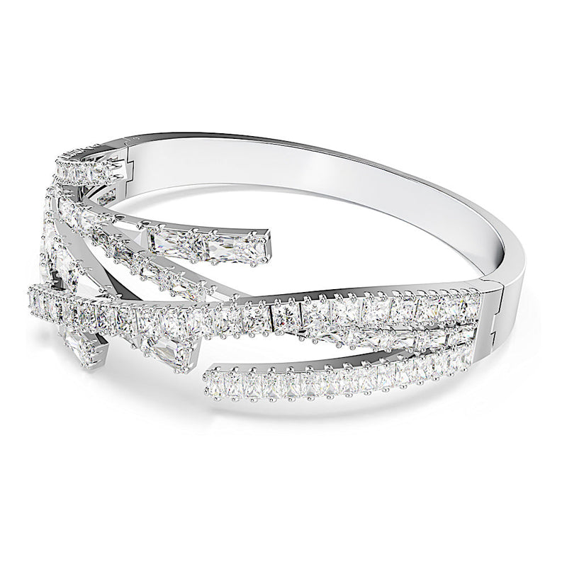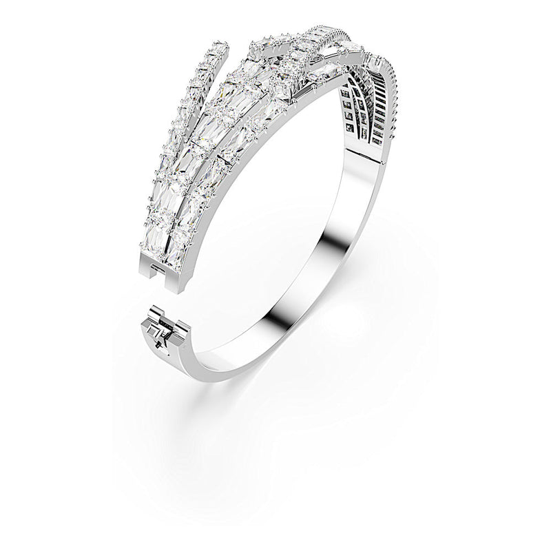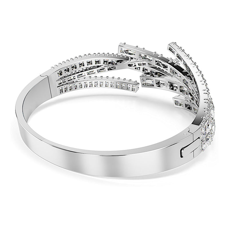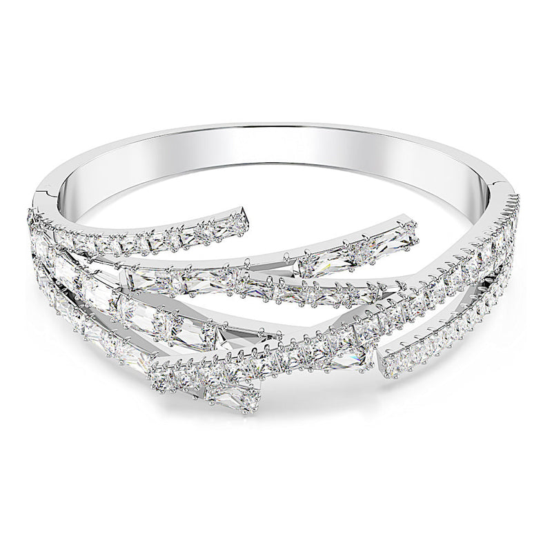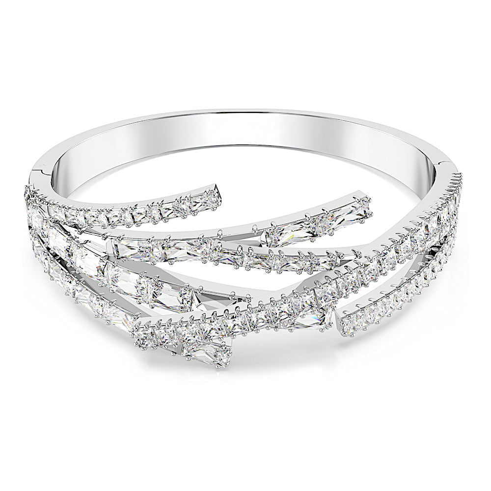 Envuelve tu muñeca con el cautivador estilo de Swarovski gracias a este brazalete polifacético. El diseño elegante y moderno está bañado en rodio y presenta un cierre lateral para un ajuste cómodo y seguro. Para crear un look de brillo deslumbrante, el brazalete está adornado con tiras de Swarovski Zirconias transparentes, que captan la luz con cada movimiento. Luce esta pieza con la gargantilla y los pendientes a juego para un look de puro glamour.