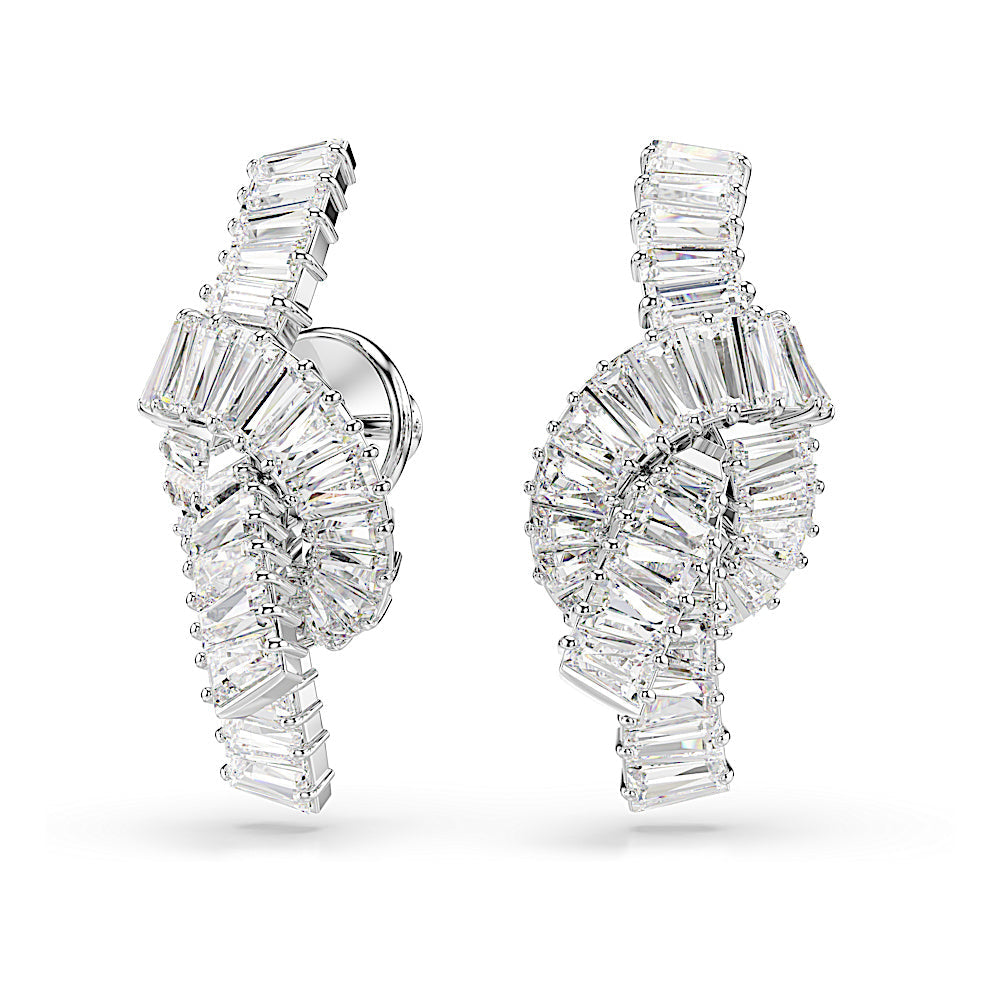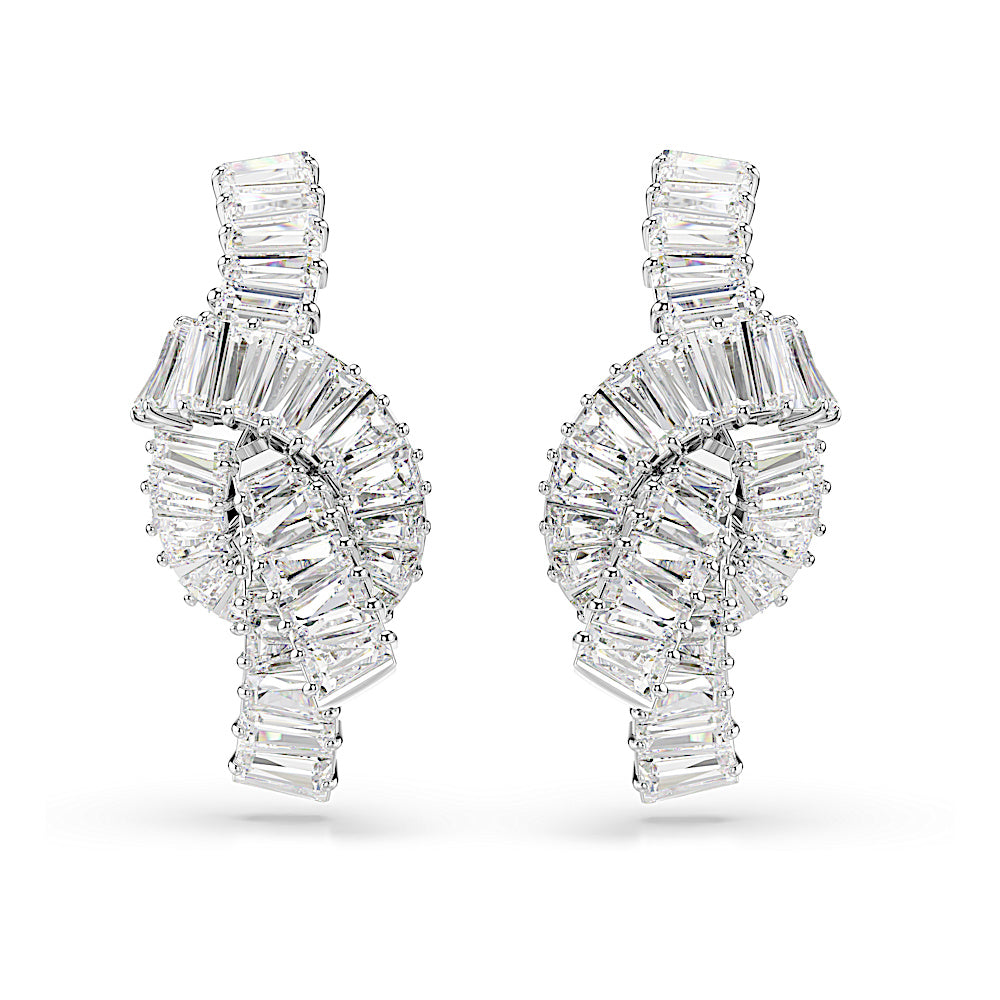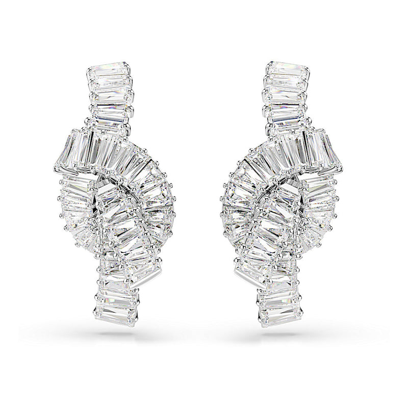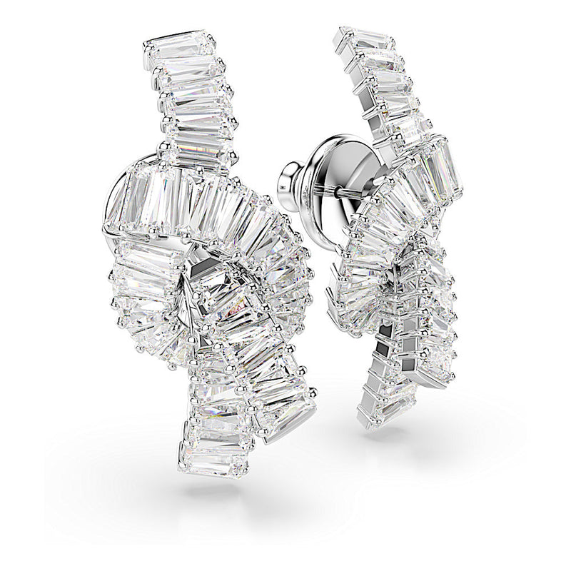 Símbolo de un vínculo inquebrantable, estos pendientes Matrix están diseñados con un estilo tejido único. Con forma de lazo, cada motivo trenzado está bañado en rodio y presenta un sofisticado adorno de Swarovski Zirconia en talla baguette con engaste de garra. Luce estos pendientes cuando se requiera sofisticación, y combínalos con accesorios Matrix a juego para un look coordinado.