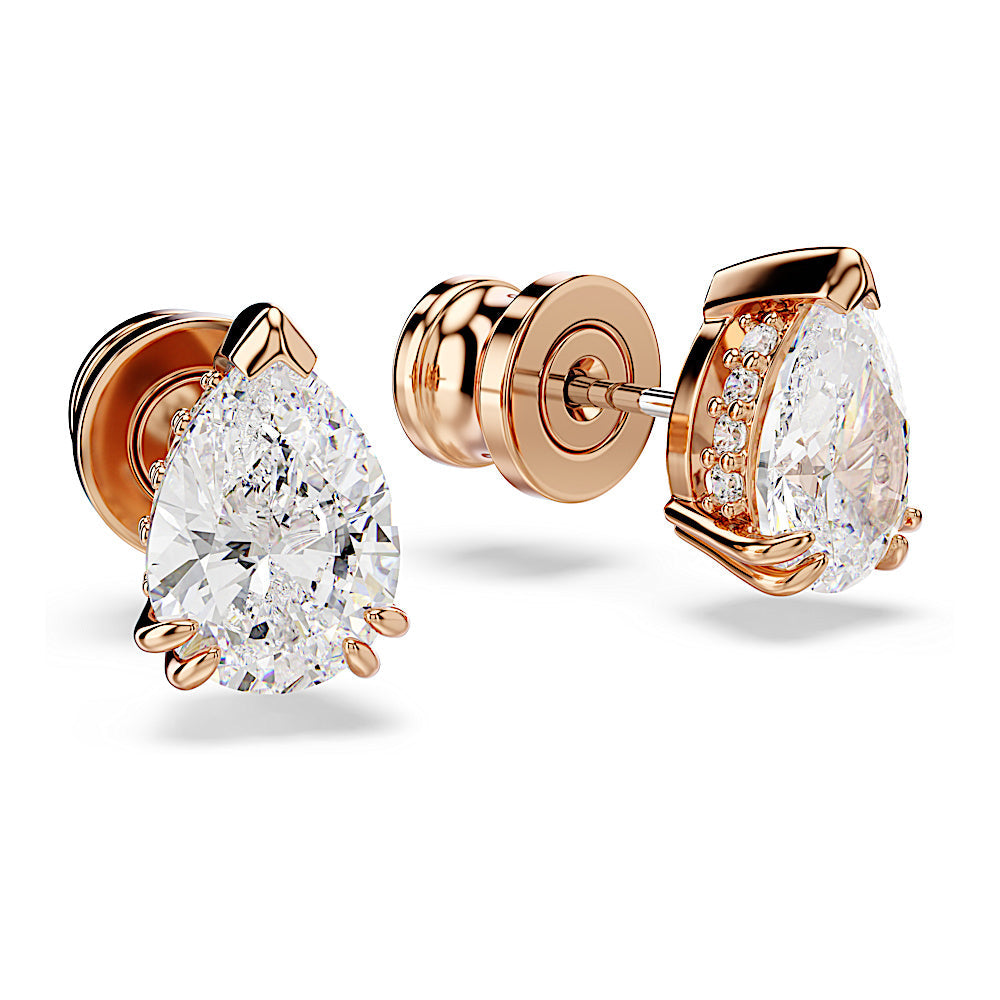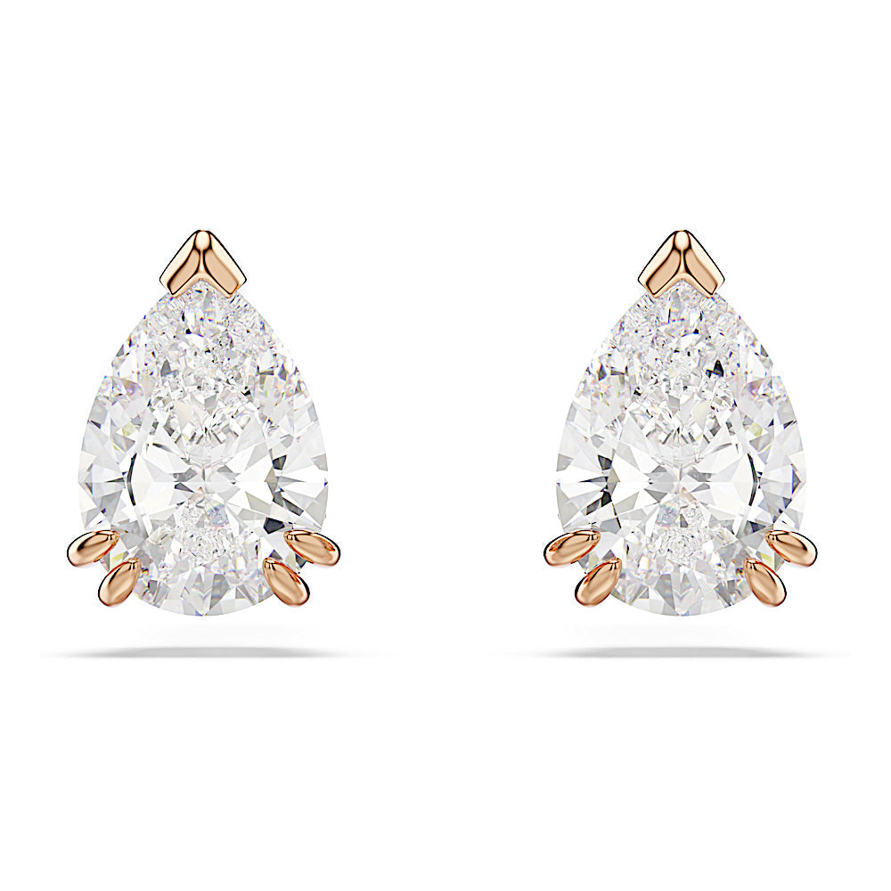 Pendientes de botón Stilla, Talla pera, Blancos, Baño tono oro rosa